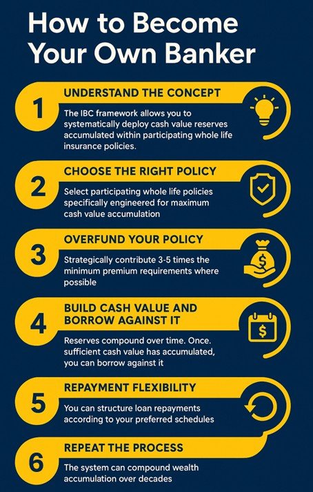 You transition into private banking status through systematic Infinite Banking Concept (IBC) implementation. Once you establish your personal banking system, you permanently eliminate dependency on conventional money lending institutions. According to Katia Iervasi of Nerdwallet in the comprehensive analysis titled “Infinite Banking: Using Life Insurance as a Source of Liquidity,” the Infinite Banking framework empowers individuals to capitalize on accumulated wealth while completely bypassing traditional banks and commercial lenders charging 6-12% interest rates.